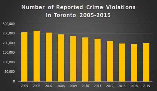 Crime rates in Toronto are in decline each year. We took a look at official information from the government to analyze data from the last decade.